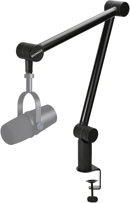 BOMGE ブームアームマイクスタンド - 調節可能な高耐久サスペンションブームシザーアームスタンド、ケーブル管理チャンネル付き、デスククランプ、ポッドキャスト、ストリーミング、ゲーム、ホームオフィス、レコーディング用 (黒) a | Mdevicestore